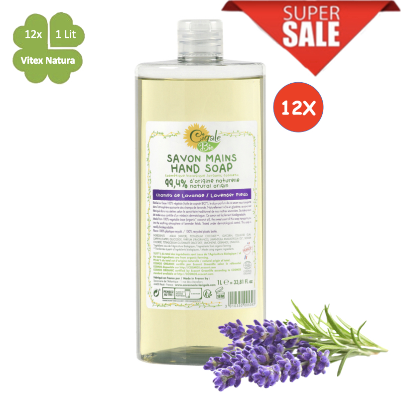 Biologische veld lavendel vloeibare zeep 12x1L Natuurlijke ingrediënten