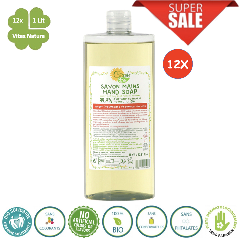 Biologische provinciaalse vloeibare zeep 12x1L Natuurlijke ingrediënten