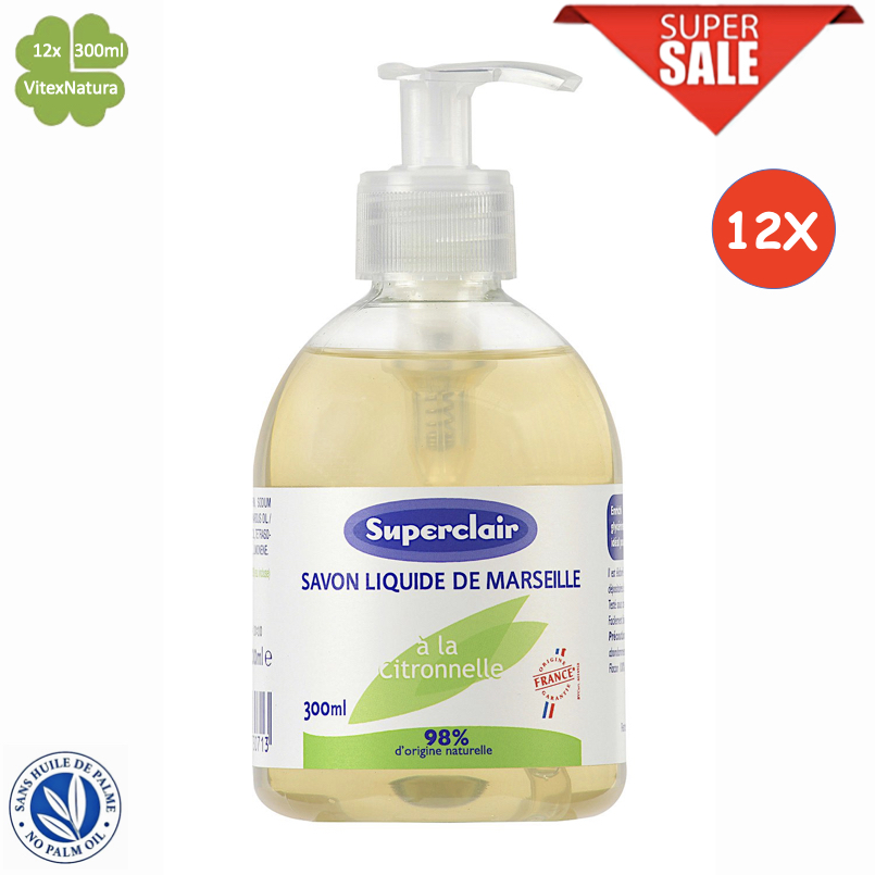 Vloeibare Marseillezeep 12x300ml met essentiële olie van citroengras en glycerine